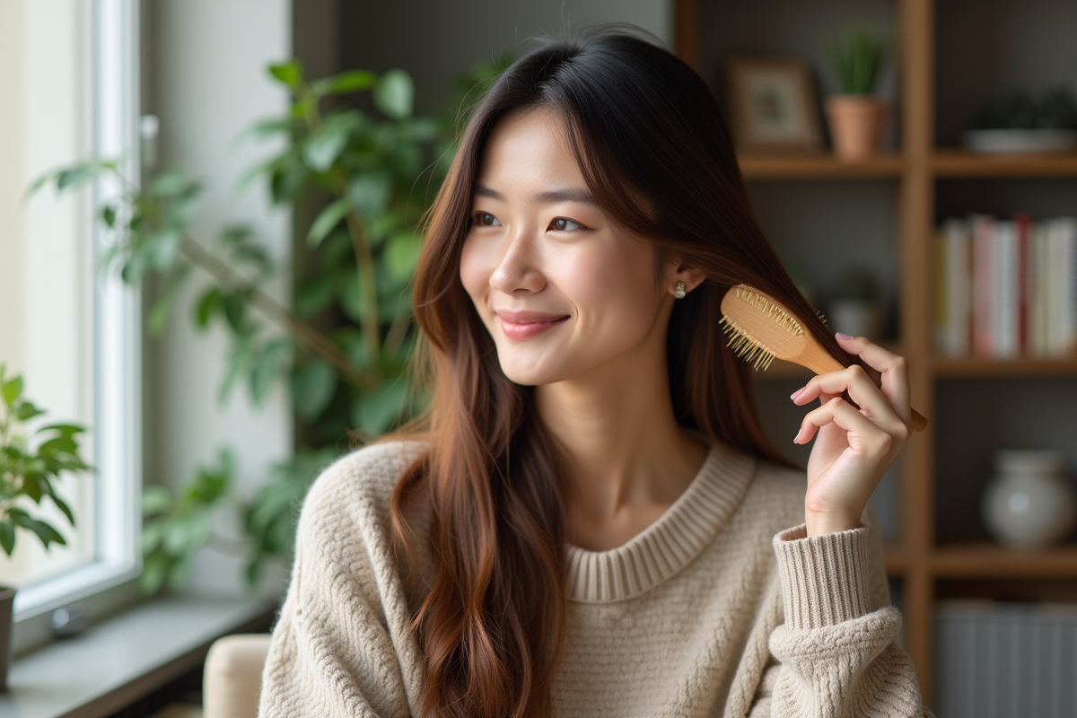 Ce soin quotidien libère également les racines des poussières et résidus qui entravent la respiration du cuir chevelu. Les professionnels insistent sur ce point : le brossage améliore l’apport d’oxygène et de nutriments vers les racines, une condition indispensable à la pousse harmonieuse. Répété matin et soir, ce geste s’intègre naturellement dans toute routine de soin exigeante.